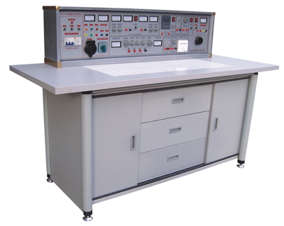 一、結(jié)構(gòu)與配備(以二十四座為例) (一) 實驗桌:學(xué)生實驗桌12張,一桌二座,實驗桌外形尺寸為160×70×80cm。桌子中央配置九孔電路插板,電路板注塑而成,表面布有九孔成一組相互聯(lián)通的插孔,元件盒在其上任意拼插成實驗電路。元件盒盒體透明直觀,內(nèi)裝電阻、電容、電感、二極管、三極管、場效應(yīng)管、可控硅等元件來完成原理實驗。內(nèi)裝元件一目了然,盒蓋印有不會褪色元件符號,線條清晰美觀。盒體與盒蓋采用較科學(xué)的壓卡式結(jié)構(gòu),維修、拆裝方便。實訓(xùn)項目由二十幾套實訓(xùn)電路板和相應(yīng)元器件來完成。每張操作桌配有一粒膠皮板,保護通用電路板和桌面(如需要在桌上放置電動機,焊接等) 桌子下部是元器件儲存柜,放置實驗元件、器材、工具等。 (二) 示教控制臺: 1臺示教臺,分別控制12臺學(xué)生實驗臺的電源,通用電路板演示屏立在實驗臺上,尺寸:160×70mm.用于講解、演示。 (三) 實驗臺:共13臺,學(xué)生實驗桌和示教臺上各配備1臺。 (四) 器材配備:MF-500萬用表13只,數(shù)字萬用表13只,臺鉆1臺,電烙鐵及烙鐵架25套,微型丁字鉆1臺,放置臺鉆桌1張,13套尖嘴鉗,斜口鉗,螺絲刀,扳手,鑷子等工具,敷銅板13片,初步焊接通用線路板及組件13套,13×22套電子技能實訓(xùn)考核組件(包括特制線路板及相應(yīng)元器件),雙門立柜2個,13套實驗所需的電阻,電位器,二極管,三極管,場效應(yīng)管,集成,可控硅,傳感器,邏輯電平開關(guān),通用集成座等,學(xué)生凳25張。 實驗項目 電工技能實訓(xùn)內(nèi)容