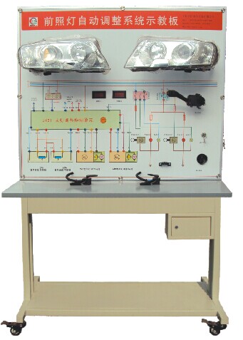 車燈控制單元、左右氙氣大燈總成、車身高度傳感器、組合開關(guān)等。并輔以發(fā)動(dòng)機(jī)轉(zhuǎn)速控制器,車速控制器,車燈照明LED動(dòng)態(tài)顯示器等。檢測(cè)端子、故障設(shè)置系統(tǒng)、大容量蓄電池或12V開關(guān)電源、大型彩色噴繪電路原理圖、控制面板、可移動(dòng)臺(tái)架、使用說明書及實(shí)訓(xùn)指導(dǎo)書等。