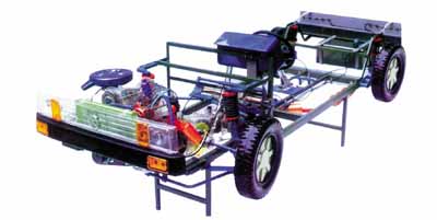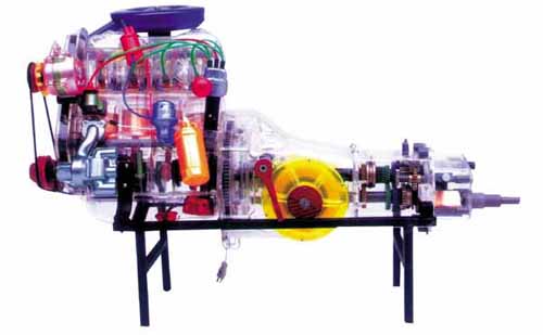 本品選用透明有機(jī)玻璃制作,內(nèi)中部件均以硬質(zhì)塑料料加工,用 螺絲固定在金屬高溫烘漆而成的車(chē)架上。各總成部分都以壓模成形加 工,代替過(guò)去膠粘合的方法,使產(chǎn)品在強(qiáng)度上有很大提高。發(fā)動(dòng)機(jī)總成用電機(jī)驅(qū)動(dòng),在油門(mén)處設(shè)有調(diào)速裝置,能演示發(fā)動(dòng)機(jī)轉(zhuǎn)速高低。離合器分離明顯,操縱靈活,離合器外殼整體壓模而成,變速箱和各檔齒輪用各種顏色表示,換檔靈活,手制動(dòng)美觀。后橋外形壓模而成,內(nèi)中主減速、差速轉(zhuǎn)動(dòng)自如,輪轂剎蹄壓模成型,剎蹄可調(diào)節(jié),前橋輪鼓可調(diào)整,轉(zhuǎn)向裝置以及電瓶、油箱、水箱,制動(dòng)管路分布清楚一目了然。電路采用對(duì)插件前后分布,燈架、風(fēng)窗、儀表板、后燈架用透明有機(jī)玻璃壓模成整體美觀逼真。